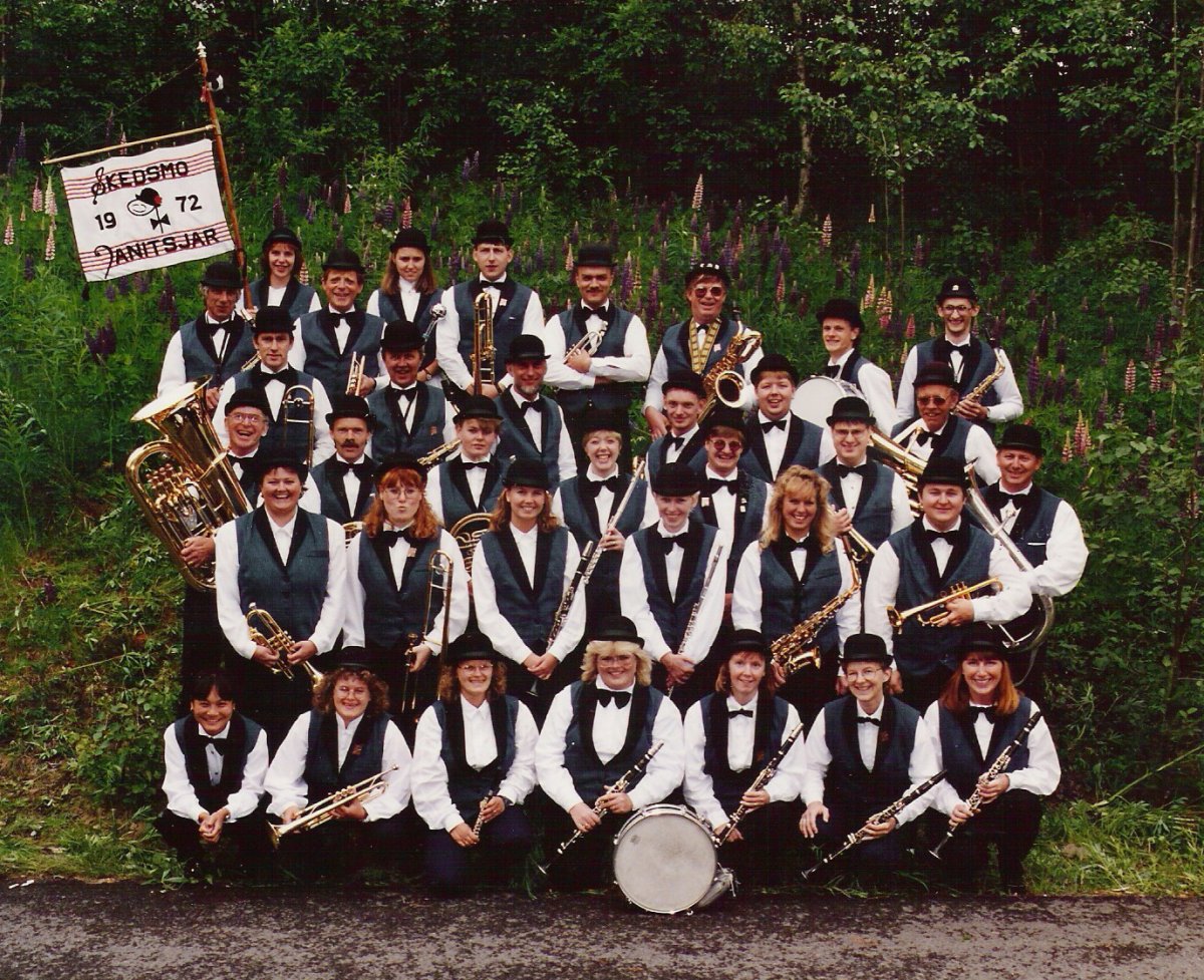 Her er janitsjaren avbildet i «full mundur» på Spill Levende festivalen i Lillehammer i 1993.